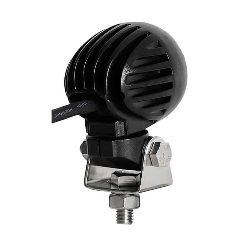 2″ Round 10W led work light use the Osram XML high power cool white LEDs, IP67 waterproof, 9-32VDC operating voltage range, 30 degree spot beam and 60 degree flood beam are available, Stainless steel adjustable mounting brackets.