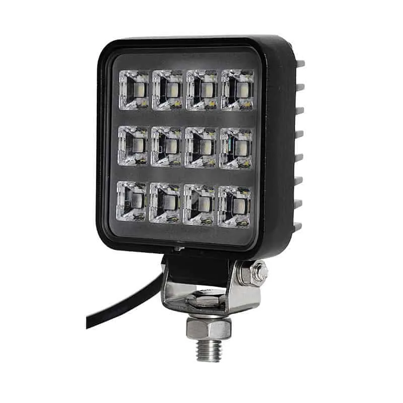 3 inch Square High Powered LED light. 12 x 1 Watt high power Cool White LEDs. 9~32VDC operating voltage range, IP67 waterproof light. Black painted aluminum housing with integral heatsink and acrylic lens. Available in narrow 30 degree or medium flood 60 degree beam pattern. Stainless steel adjustable stud mounting bracket and optional mounting tabs included.