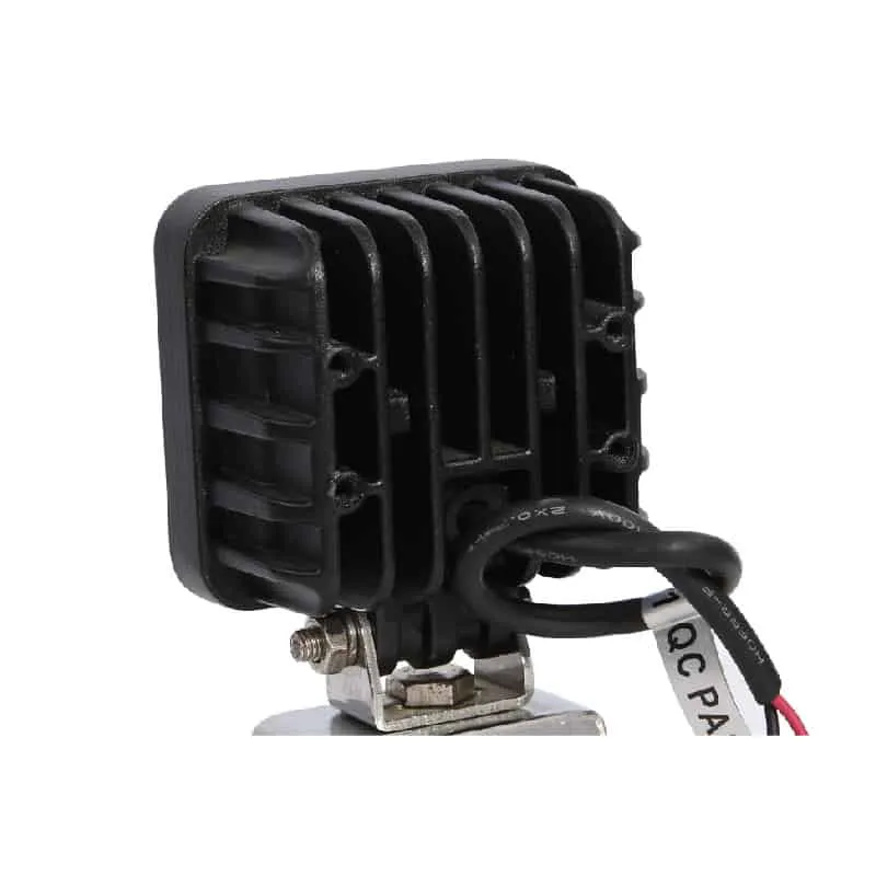 3inch 18w mini LED work light with high powered 3 Watt LEDs, 9-32VDC operating voltage range, IP67 waterproof light. Black painted aluminum housing with integral heatsink and acrylic lens. Available in narrow 30 degree or medium flood 60 degree beam pattern. Stainless steel adjustable stud mounting bracket and optional mounting tabs included.