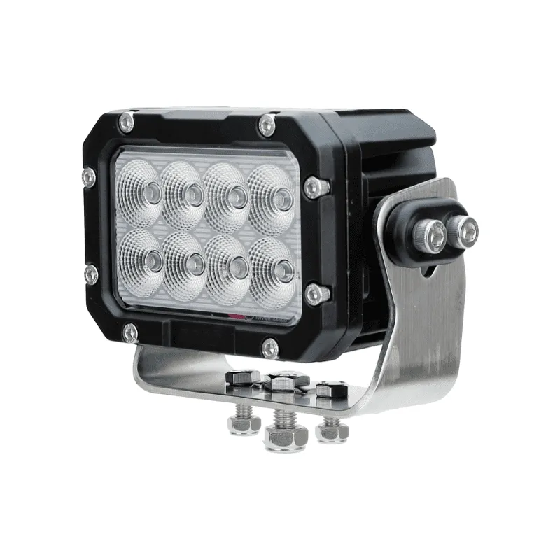 5.3inch 80W OSRAM LED work lights use the high powered 10Watt OSRAM LEDs, 10-30VDC operating voltage range, IP67 waterproof light. Black painted aluminum housing with integral heatsink and acrylic lens. Available in narrow 30 degree or medium flood 60 degree beam pattern. Stainless steel adjustable stud mounting bracket and optional mounting tabs included.
