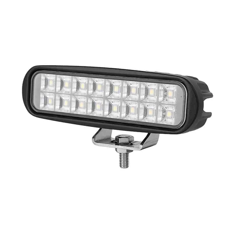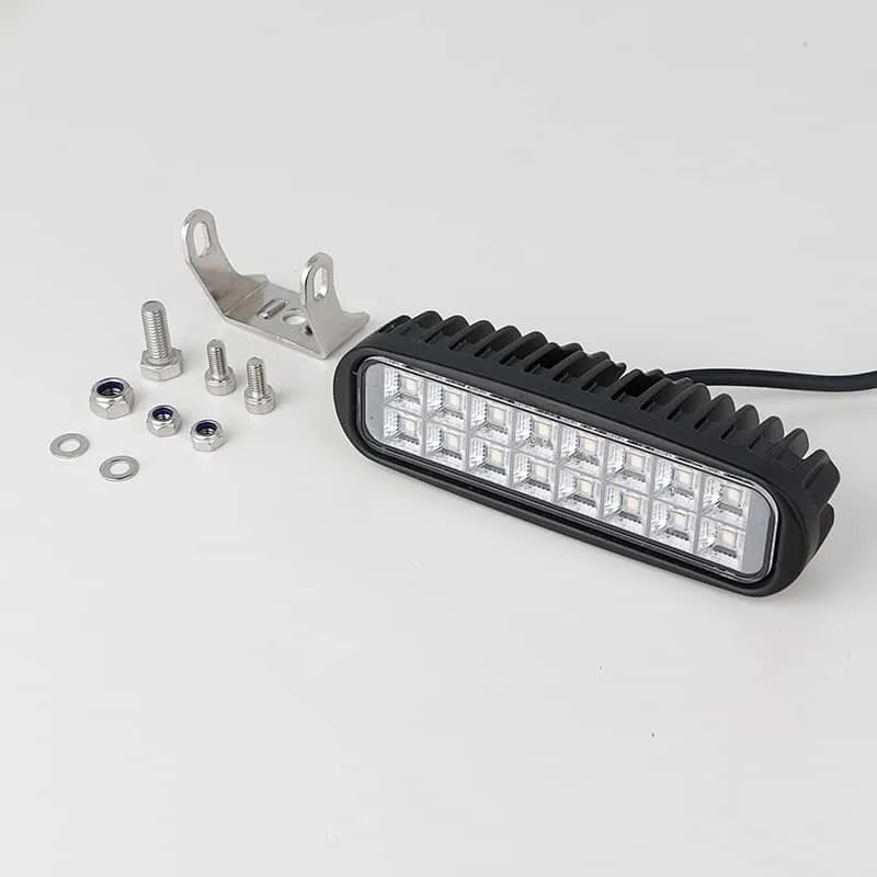6 inch Square High Powered LED light. 16 x 1Watt Osram high power Cool White LEDs. 9~32VDC operating voltage range, IP67 waterproof light. Black painted aluminum housing with integral heatsink and acrylic lens. Available in narrow 30 degree or medium flood 60 degree beam pattern. Stainless steel adjustable stud mounting bracket and optional mounting tabs included.