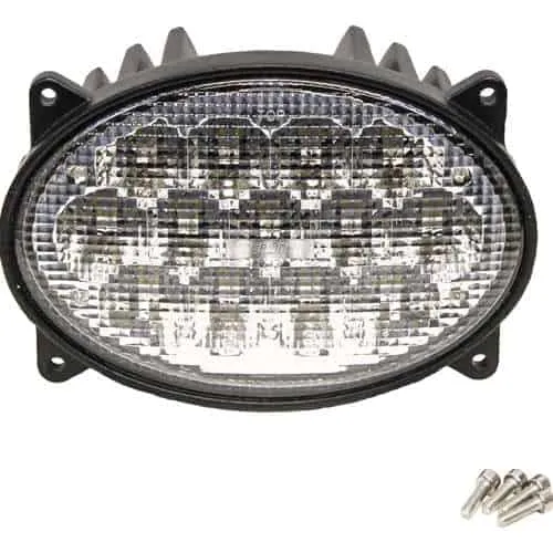 LED Oval Headlight fits into the hood of John Deere Tractors, and the top of the cab in Case/IH Combines. High/Low Beam, Plug & Play. Uses Original Mount and Wiring, Plug and Play.
