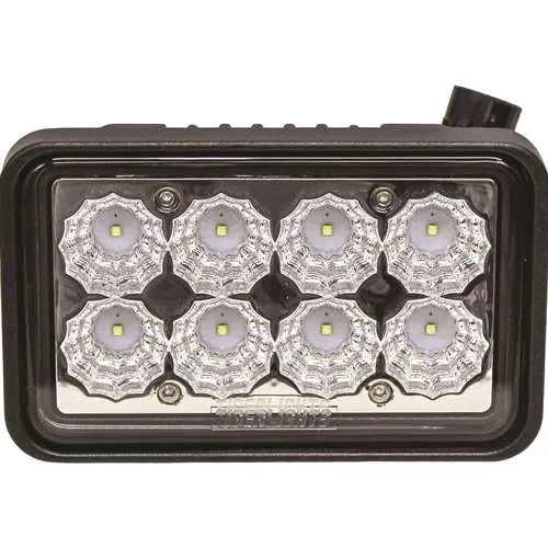 Skid Steer Headlight is a direct replacement, Plug & Play LED Light. It fits into the two front lights above the cab and the rear work/reverse light.