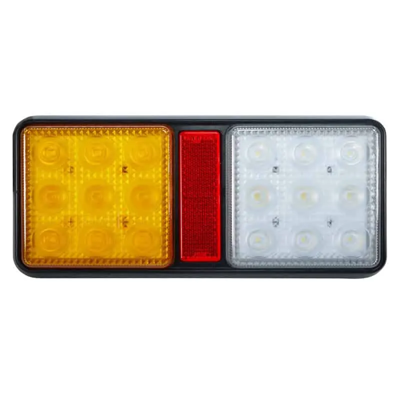 Volt: 12-28V Color: Red/Amber/White LED Type: 18 SMDs Function: Reverse, Stop/Tail, Rear Direction Indicator Lamp Dimension: 8.351inch